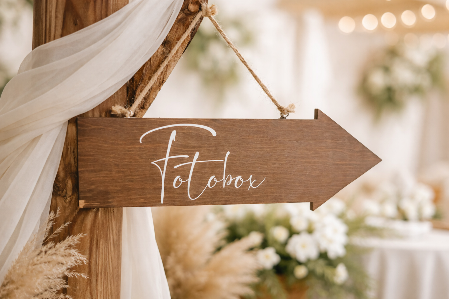 Unser hochwertiger personalisierter Holzpfeil ist die perfekte Dekoration und zugleich ein praktischer Wegweiser für Hochzeit, Babyparty, Firmenfeier oder Geburtstag. Mit individueller Beschriftung zeigt er deinen Gästen stilvoll den richtigen Weg – ob zur Candy Bar, Tanzfläche, Fotobox oder zum Empfang.