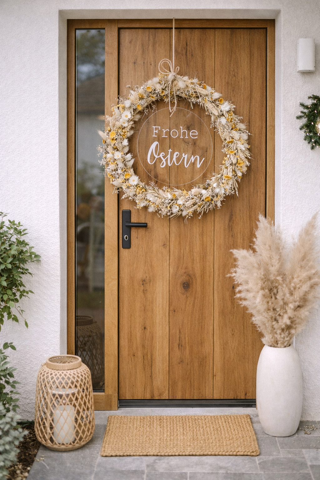 Boho Ring mit Trockenblumen Unser traumhaft schöner Boho Kranz wird von uns mit sehr viel Liebe zum Detail für euch hergestellt. Der Kranz besteht aus einem Metalleing und wird mit tollen Trockenblumen verziert. Optional könnt ihr noch eine Acrylglasscheibe personalisieren lassen, so habt ihr einen tollen einzigartigen Kranz, den Ihr euch zum Beispiel an die Tür hängen könnt. Eine wundervolle Begrüßung. Entweder an der Tür oder auch als Wanddekoration. Ein perfektes Geschenk zur Hochzeit, zum Neubau (Richtfest), Einzug oder einfach so. Die frischen Farben eignen sich auch perfekt um Osterzeit auch dekorativ zu begrüßen. Das personalisierte Schild könnt ihr beispielsweise mit „ Frohe Ostern „ beschriften lassen. Ihr könnt den Kranz mit einem Metallring ( ca. 30cm) und einem Mix aus Gelb, Natur, Grün und beige farbigen Trockenblumen wählen. Bei jedem der Kränze könnt Ihr mit einer personalisierten Acrylglasscheibe euern Kranz einzigartig machen. ACHTUNG: Die Kränze können sich in ihrer Erscheinung und Farbe leicht verändern. Dekoration NICHT im Lieferumfang enthalten.