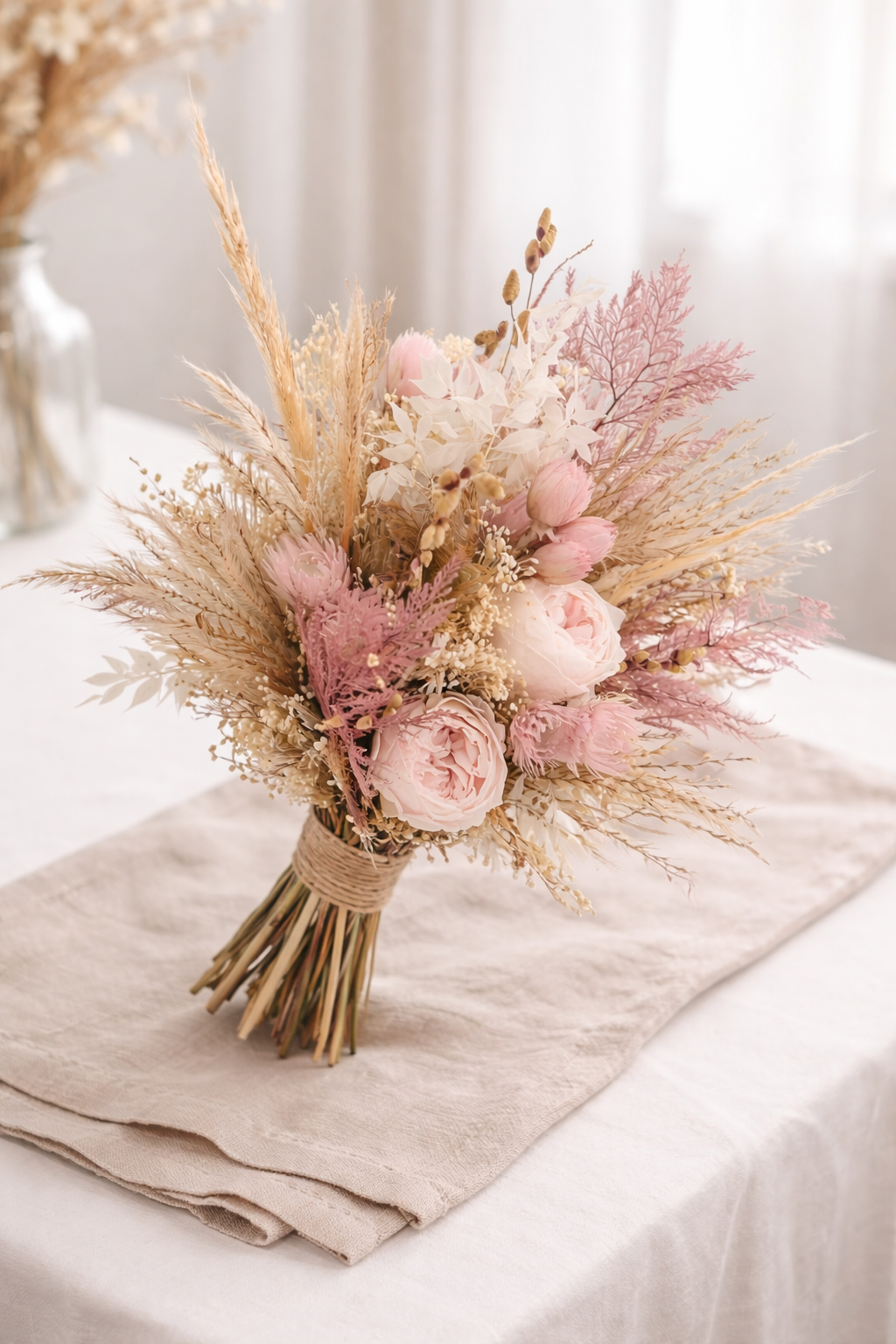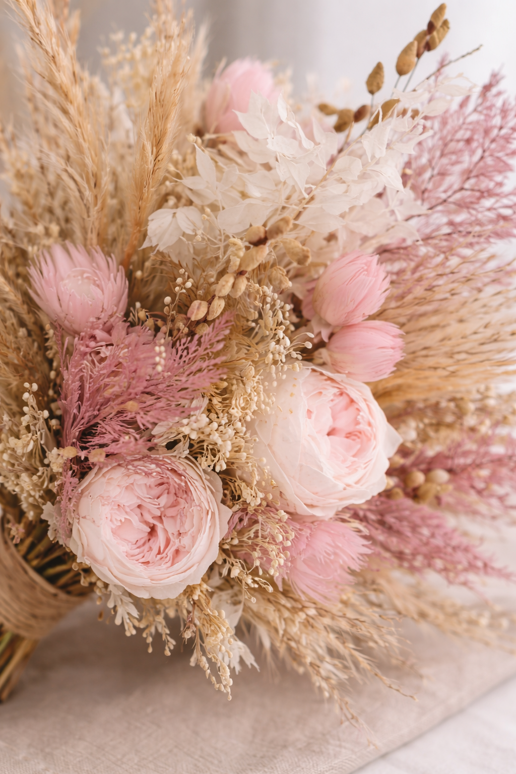 Brautstrauß aus Trockenblumen in Beige & Rosa | Nachhaltig & handgemacht