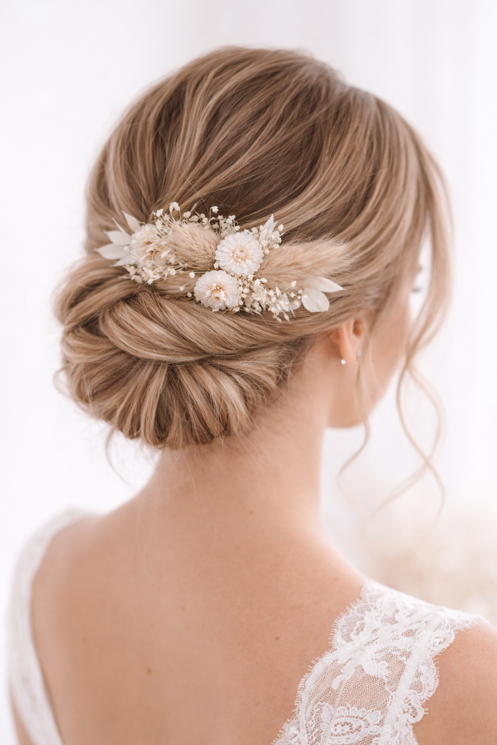 Unsere wunderschönen Haarkämme mit Trockenblumen werden individuell und liebevoll von Hand gefertigt und sind ein stilvolles Highlight für deine Brautfrisur oder festliche Looks. Dieses hochwertige Haaraccessoire verbindet natürliche Eleganz mit zeitloser Schönheit.