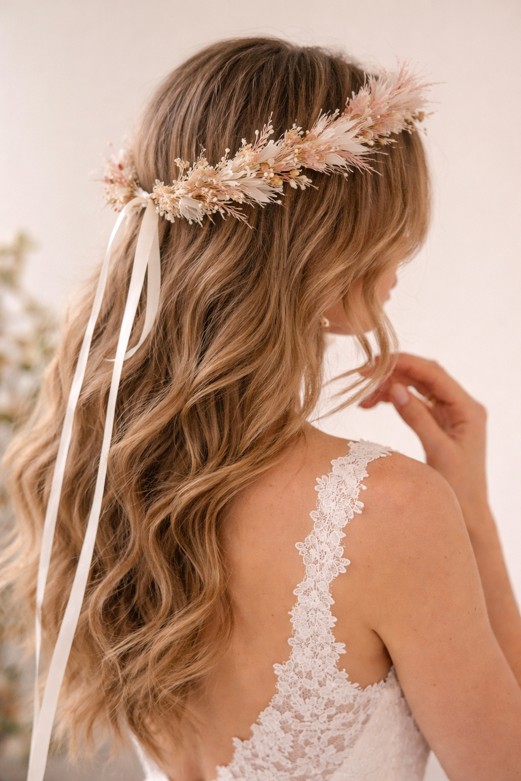 Haarkranz aus Trockenblumen – natürlich & zeitlos schön für deine Hochzeit